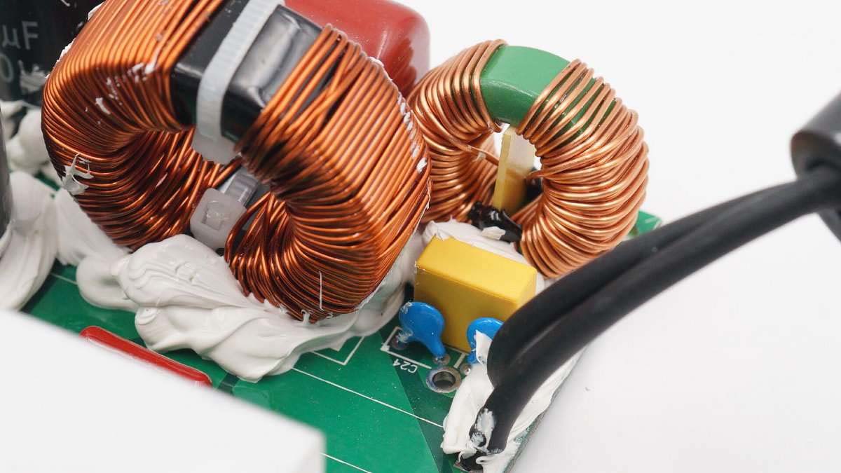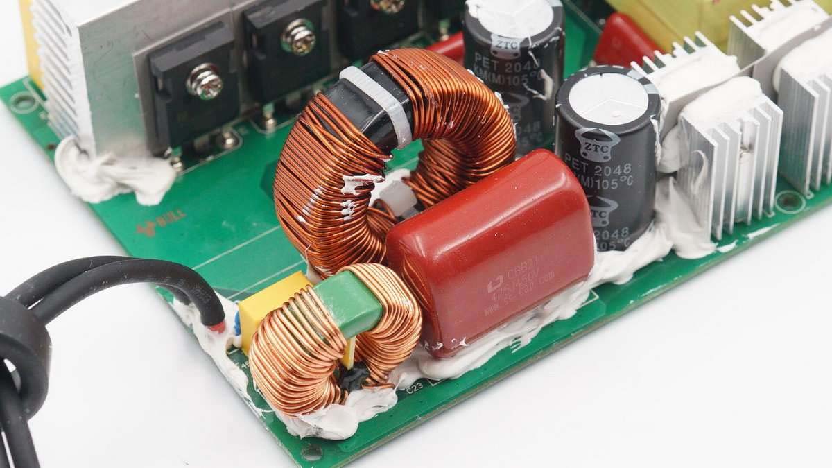 此外這一端還有濾波電感、薄膜電容、共模電感等器件。