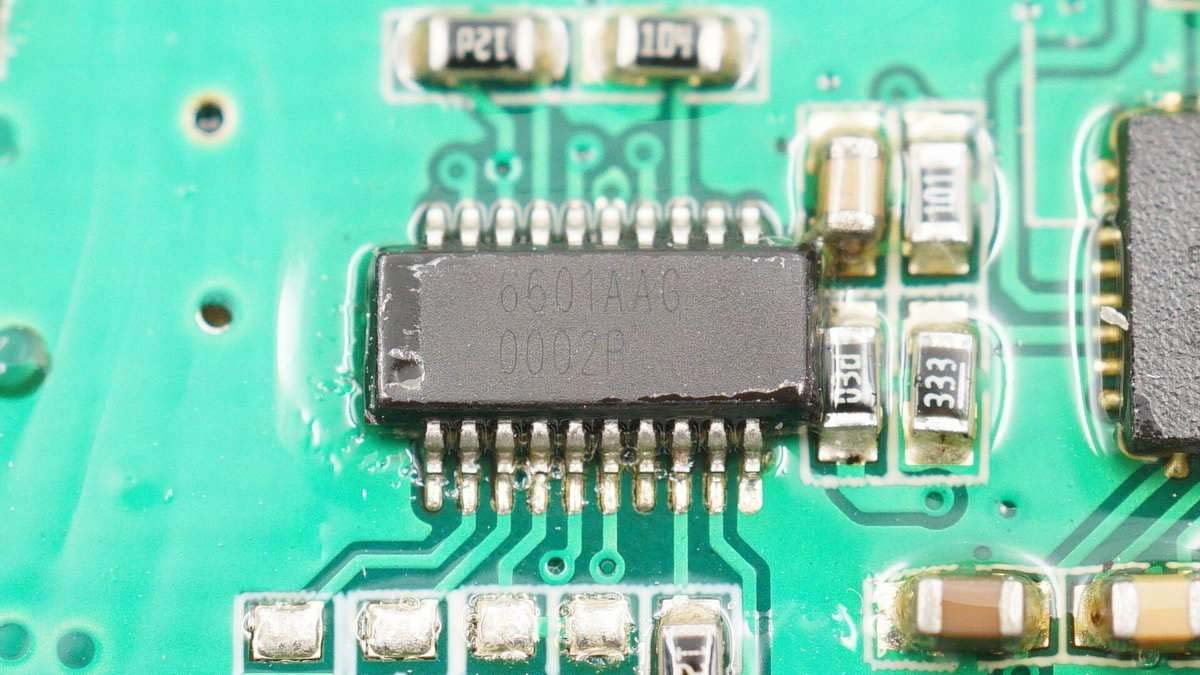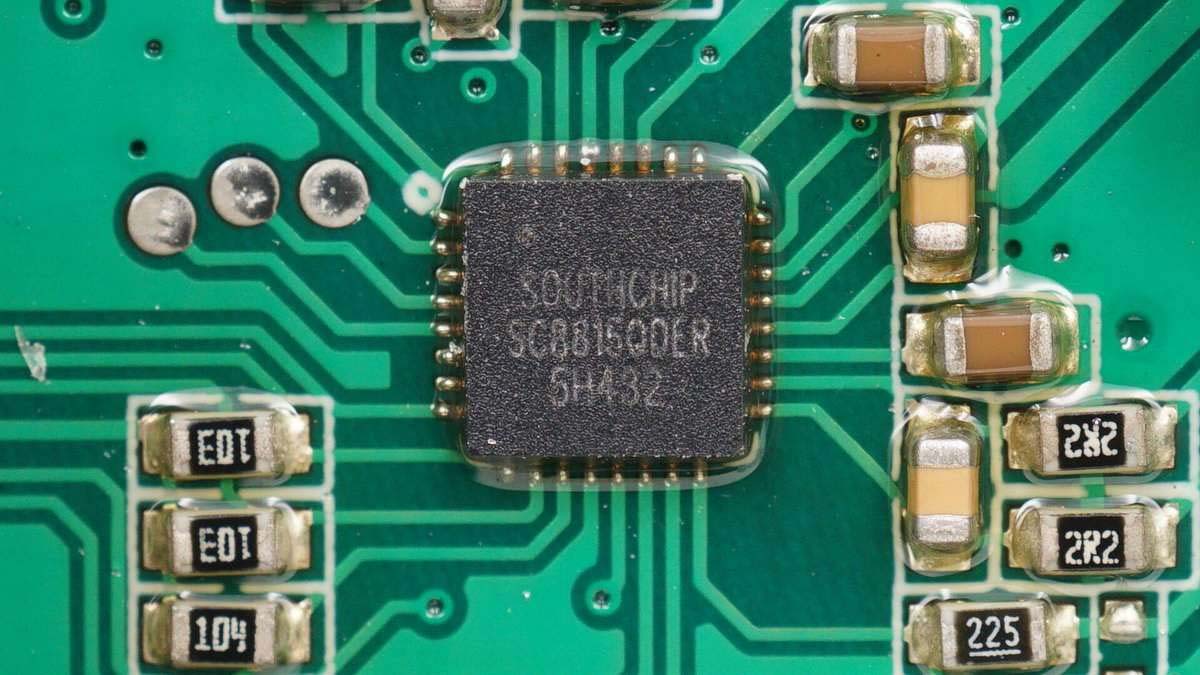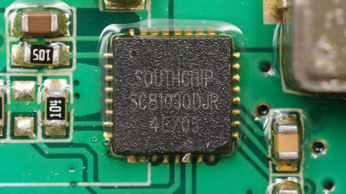 USB-C口協(xié)議芯片采用南芯SC2001。這款芯片可以同時支持一組CC信號及多達4組DPDM信號控制,集成了PD2.0、PD3.0、PPS、BC1.2、AFC、FCP、SCP、VOOC以及SUPER VOOC等多種快充協(xié)議;且具有30V的額定電壓和多重內(nèi)置保護,包括過熱保護、恒功率、恒流和過壓保護,以確保系統(tǒng)的安全運行。