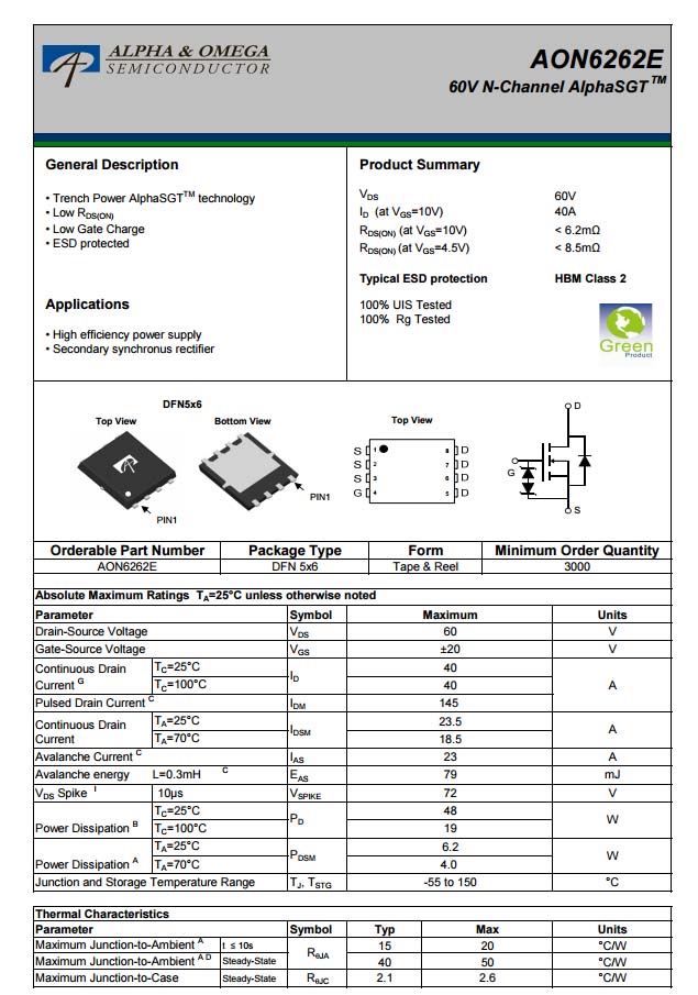 AOS AON6262E資料信息。