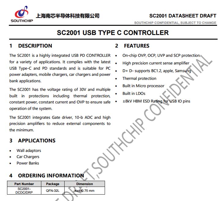 此外SC2001內(nèi)部集成了門驅(qū)動器、10bit ADC以及高精度放大器,可以將外部組件數(shù)量降到最少;適用于充電器、車充、移動電源、多口充等產(chǎn)品領(lǐng)域。