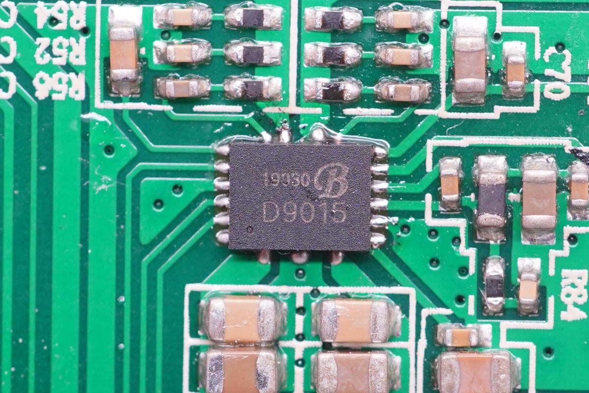 耳機無線充電輸出PowerStage芯片來自貝蘭德,型號D9015。該芯片內置全橋功率級,最高輸出功率10W,集成5V同步整流降壓轉換器,3.3V LDO,可以為控制器和其他外部設備供電。