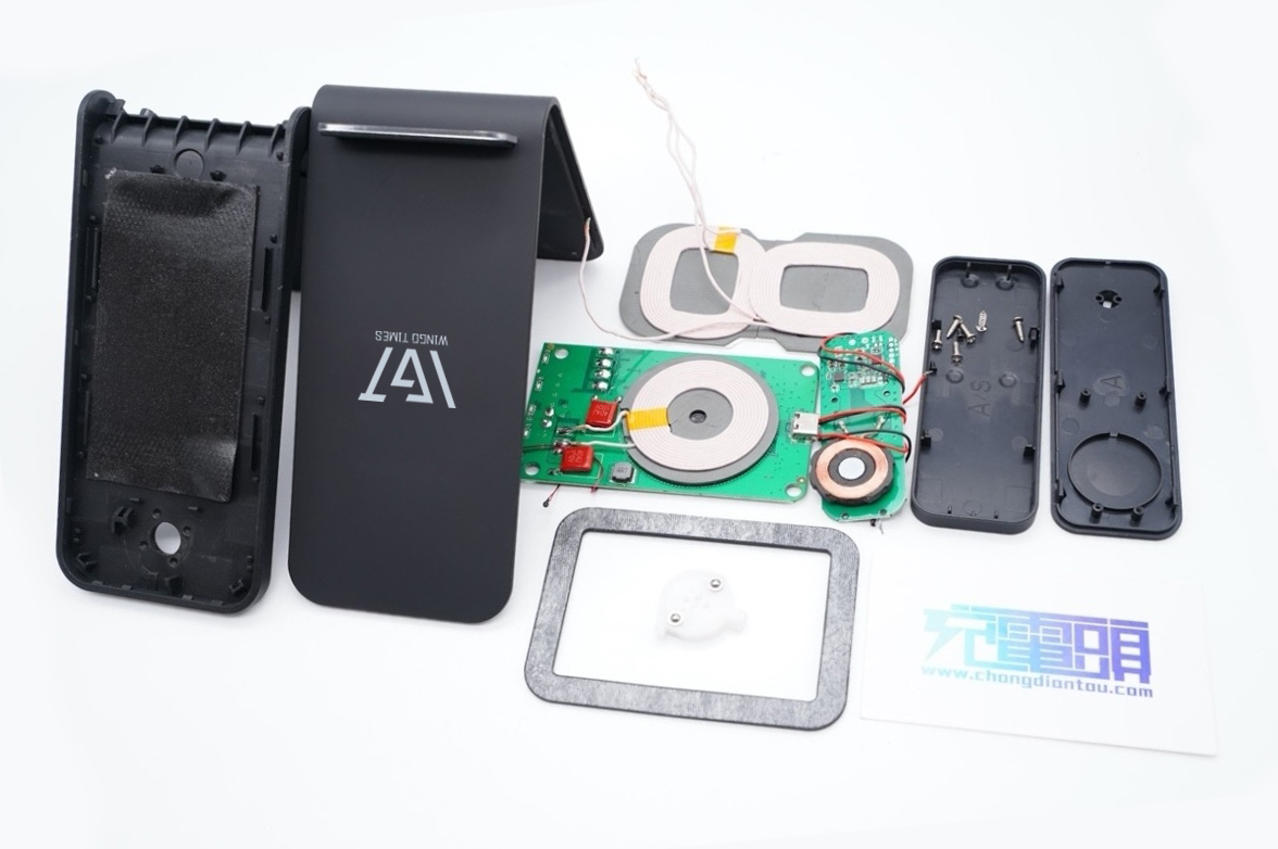 耳機無線充手機殼也拆開,PCB板使用螺絲固定。