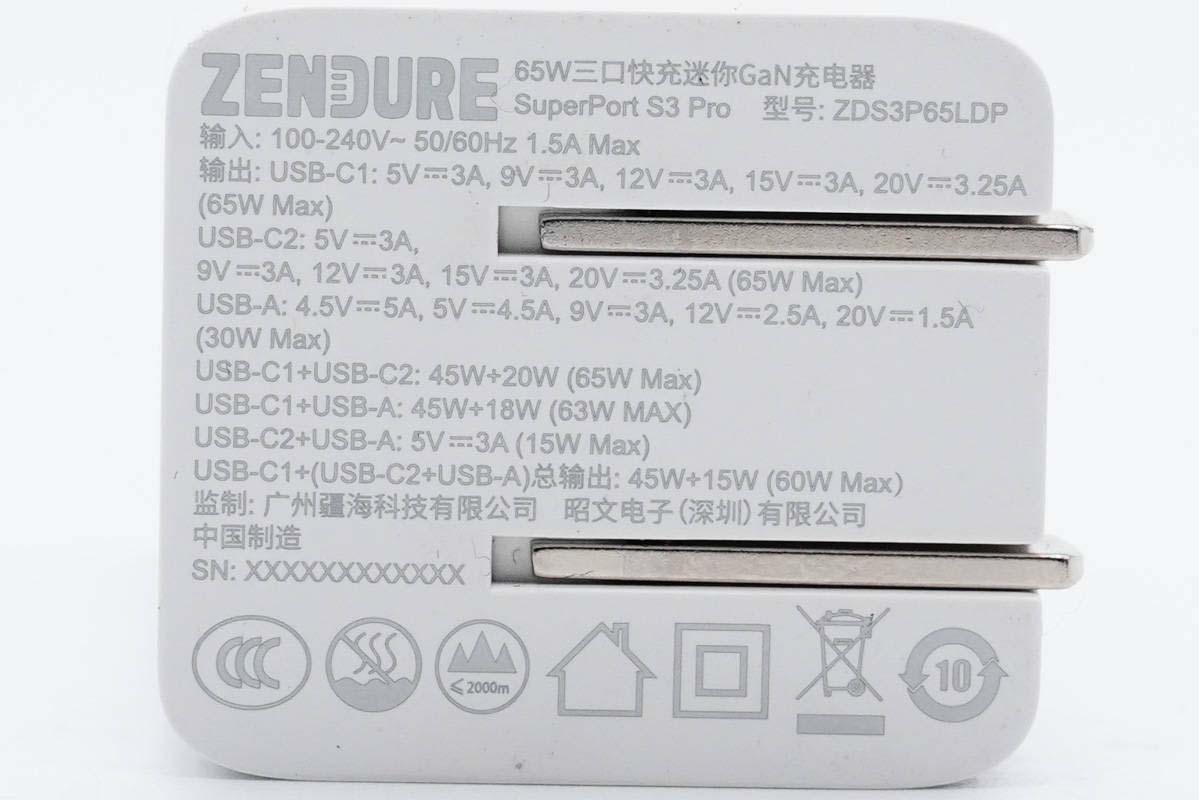 產(chǎn)品名稱:ZENDURE 65W三口快充迷你GaN充電器SuperPort S3 Pro
