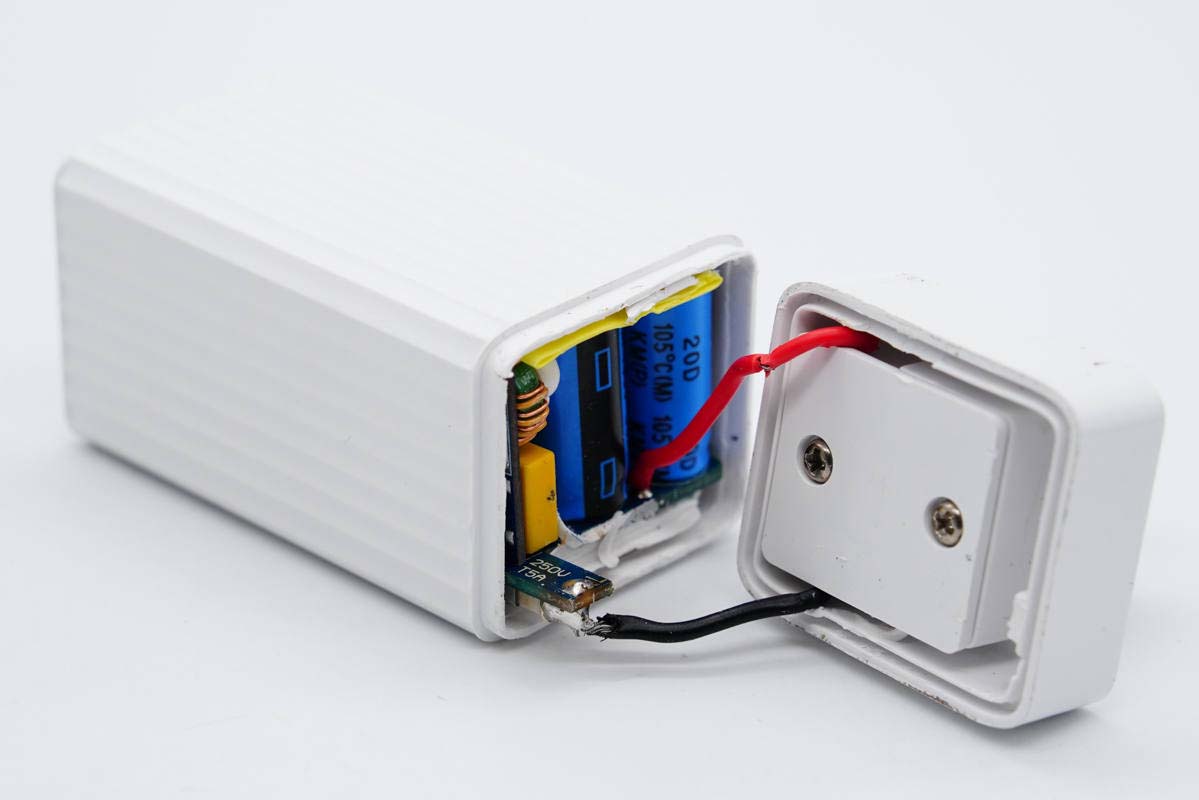 充電頭網(wǎng)通過拆解了解到,作為一款柱狀造型充電器,內(nèi)部采用了經(jīng)典的三段式布局設(shè)計(jì),層次分明,輸入輸出端設(shè)有小板,充分利用內(nèi)部空間。其次充電器采用開關(guān)電源加兩路DC-DC架構(gòu),也很典型。