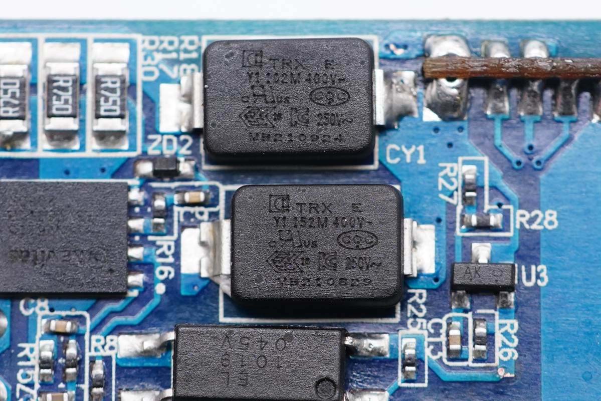 兩顆貼片Y電容來自四川特銳祥科技股份有限公司,具有體積小、重量輕等特色,非常適合應(yīng)用于氮化鎵快充和小體積高密度電源產(chǎn)品中。