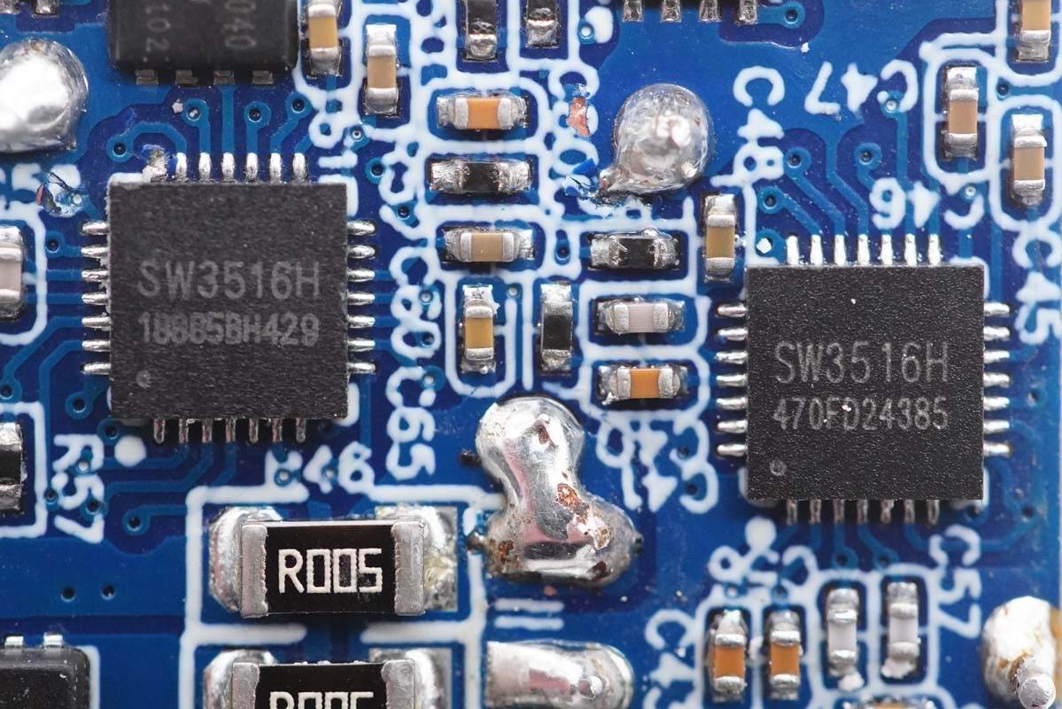 C1口和另外1A1C口的二次降壓電路主控芯片均采用智融SW3516H,用于進(jìn)行降壓控制和協(xié)議識(shí)別。智融SW3516H是一款高集成度的多快充協(xié)議雙口充電芯片,支持A+C口任意口快充輸出,支持雙口獨(dú)立限流。