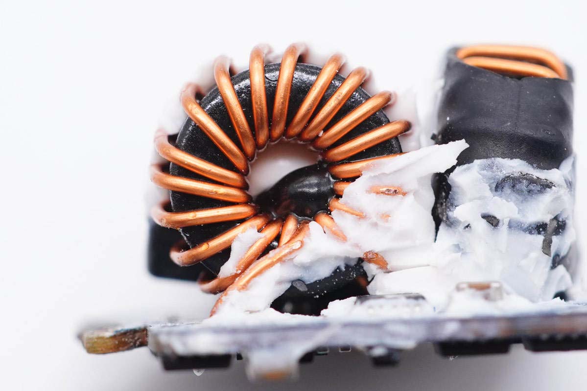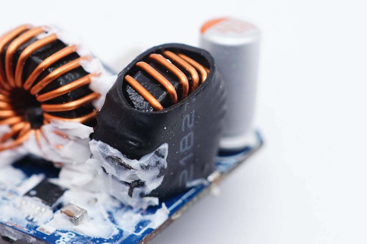 降壓電感特寫,外套熱縮管。