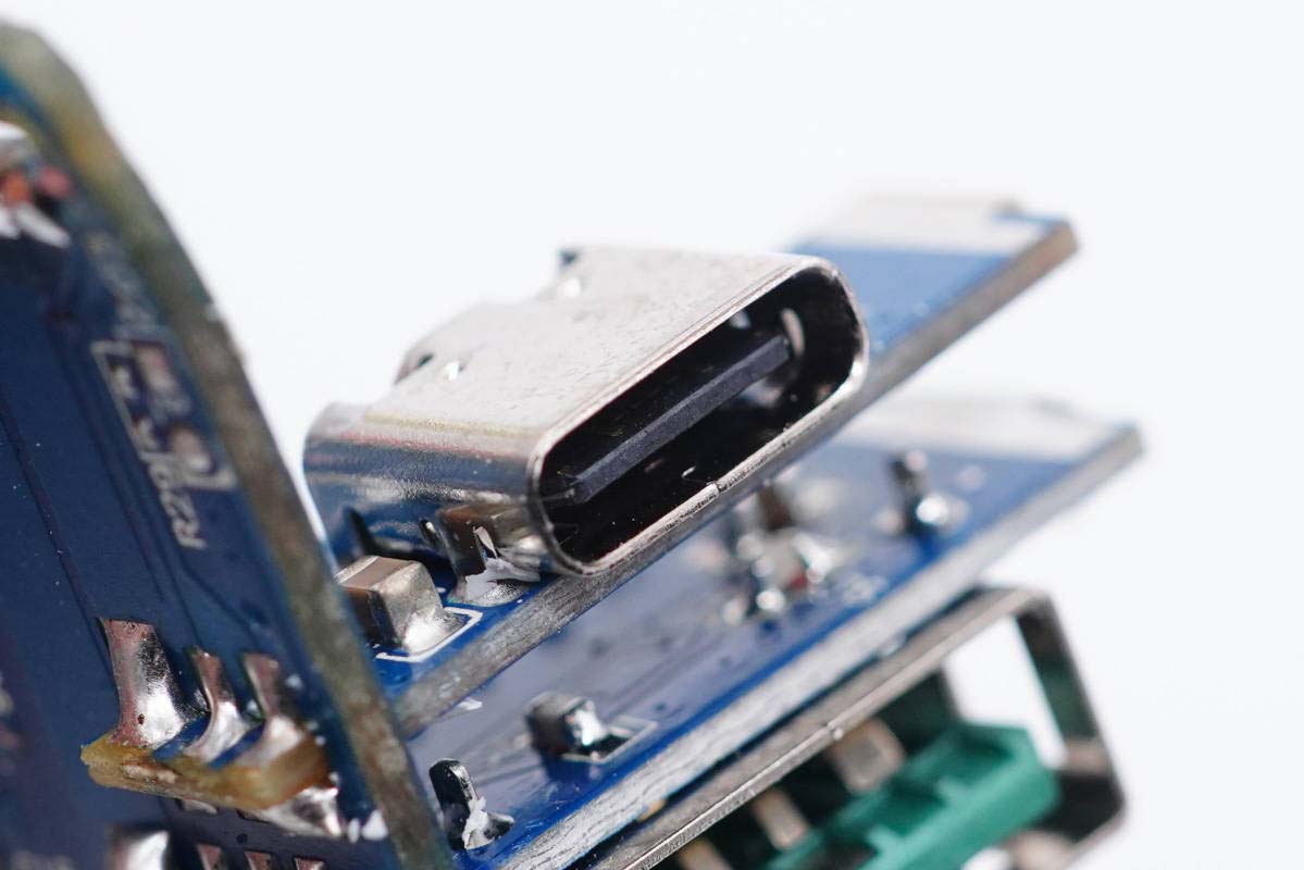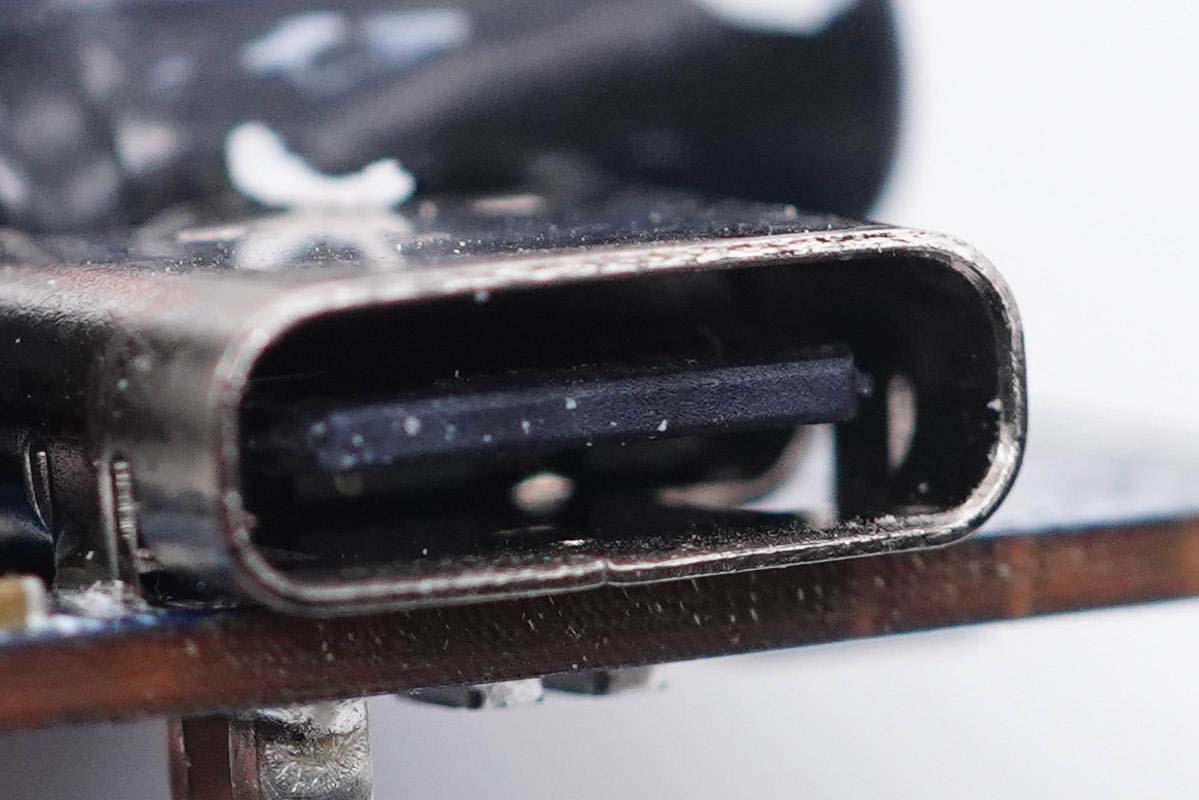 USB-C1母座特寫,過孔焊接。