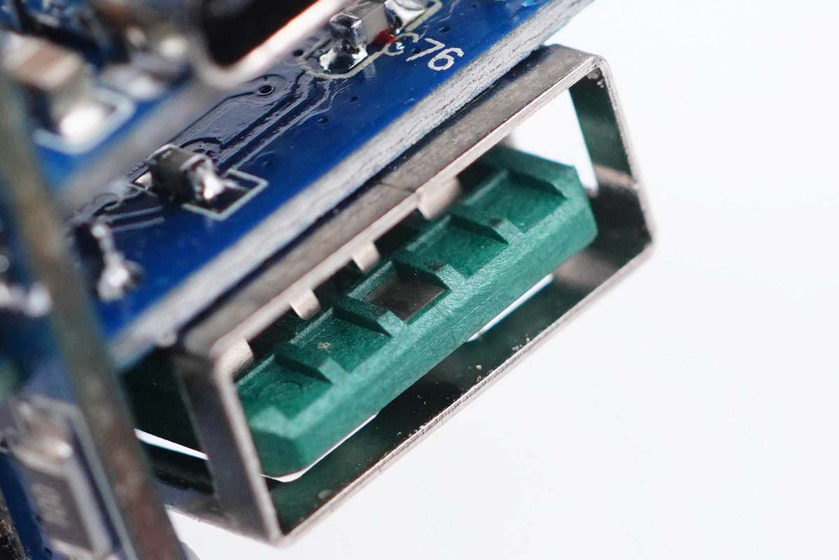 輸出端三個(gè)USB母座均使用小板垂直焊接,充分利用內(nèi)部空間。