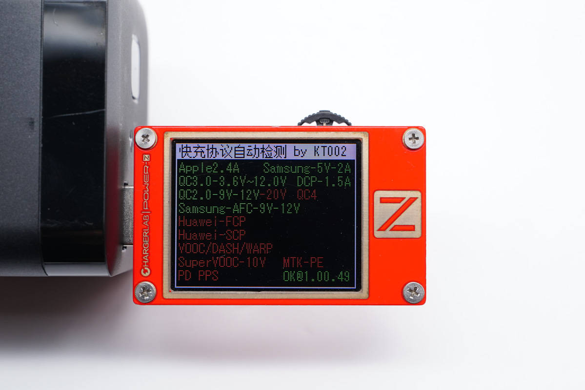 使用ChargerLAB POWER-Z KT002測得USB-A口支持Apple 2.4A、Samsung 5V2A、DCP協議,以及QC2.0/3.0、AFC快充協議。