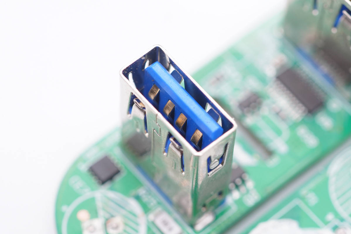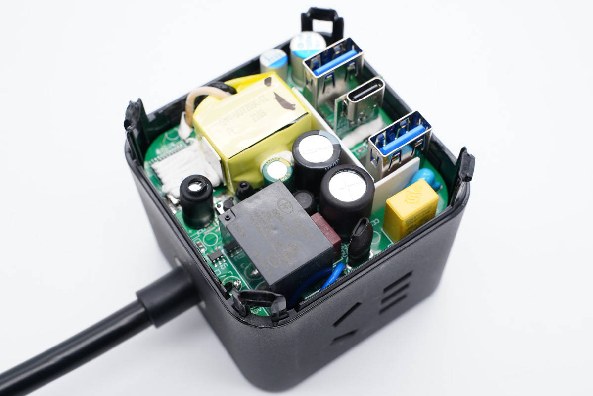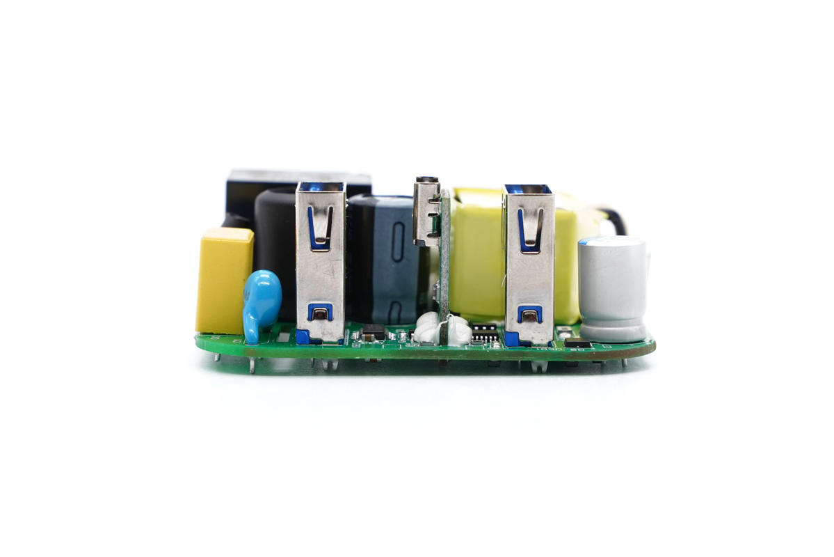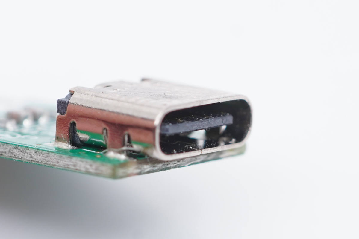 輸出端兩個USB-A母座加長設計,USB-C母座焊接在小板上,并打膠加固。