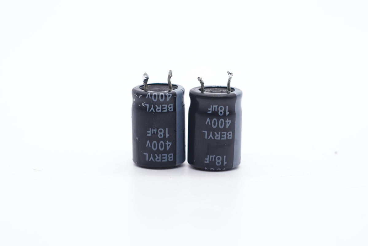 兩顆綠寶石高壓濾波電解電容,規格均為400V 18μF。