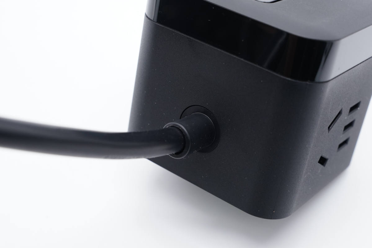 插座機身是立體方塊造型,PC材質黑色外殼,六面基本磨砂處理,腰身各面之間過渡圓潤,整體十分有氣質。