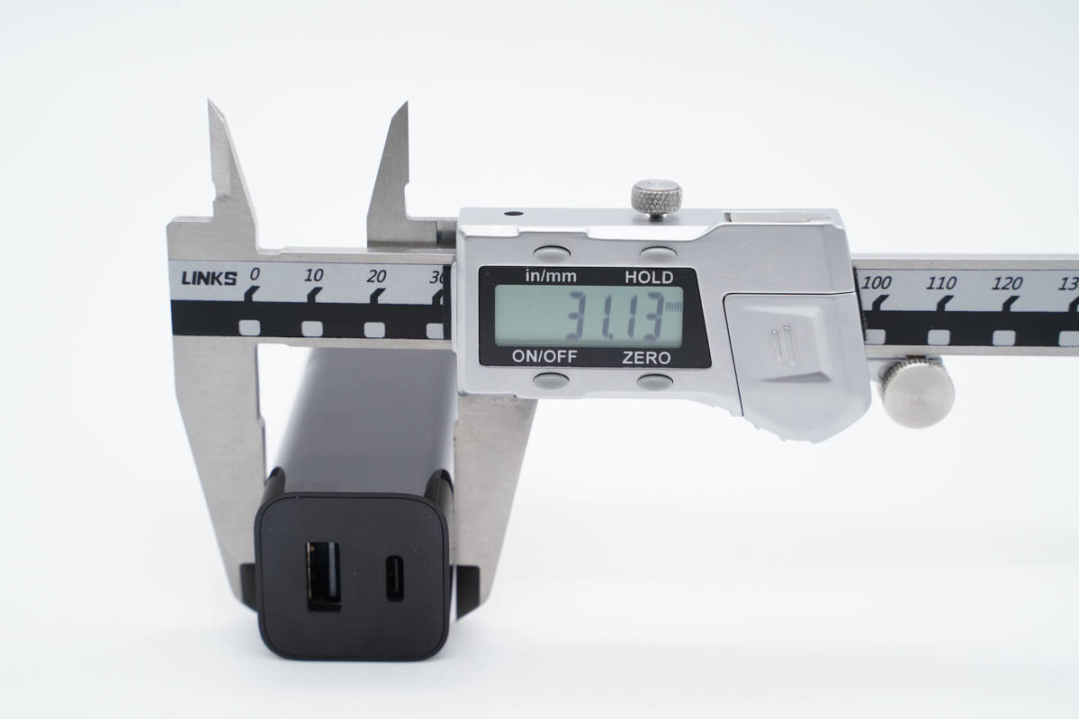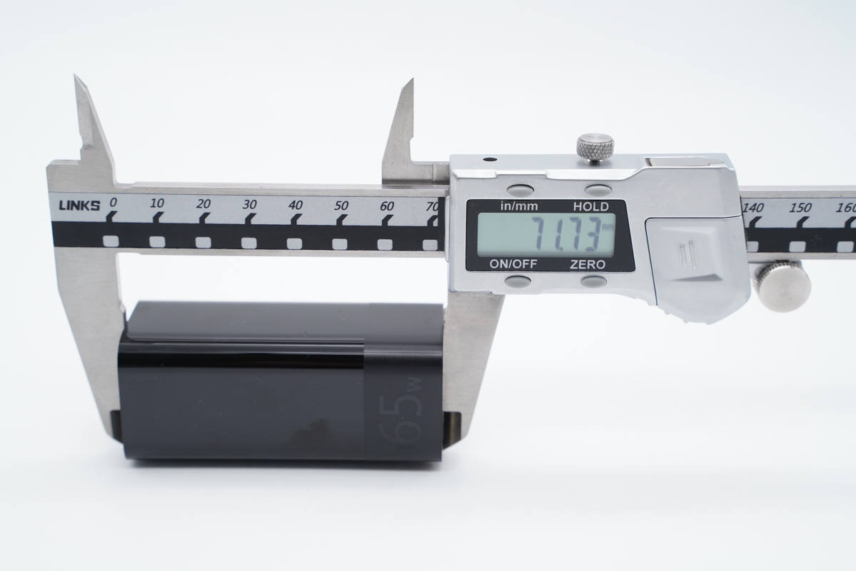 使用游標(biāo)卡尺實測充電器機身長度為71.73mm。