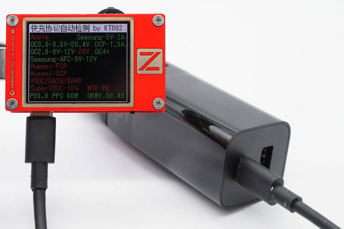 另外使用KT002測得USB-C口支持Samsung 5V2A、DCP協(xié)議,以及QC2.0/3.0、AFC、PD3.0、PPS快充協(xié)議。