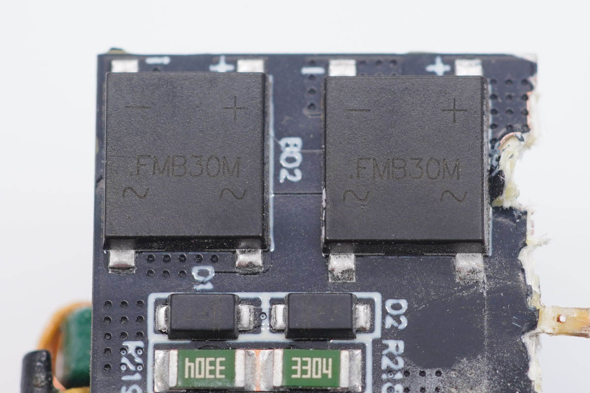 FMB30M整流橋特寫,設(shè)置兩顆以均攤發(fā)熱。