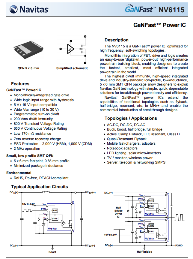 納微半導(dǎo)體 NV6115 詳細資料。