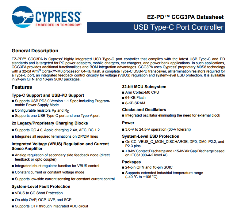 賽普拉斯CYPD3174資料信息。