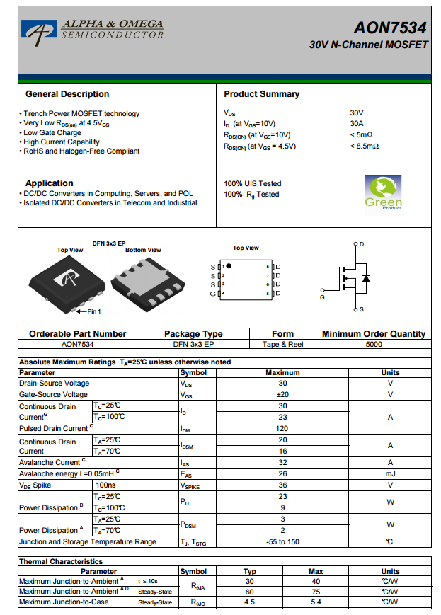 AOS AON7534 資料信息。