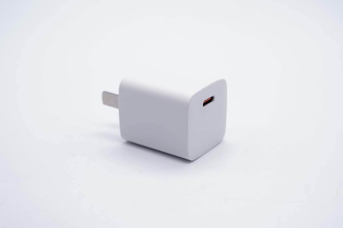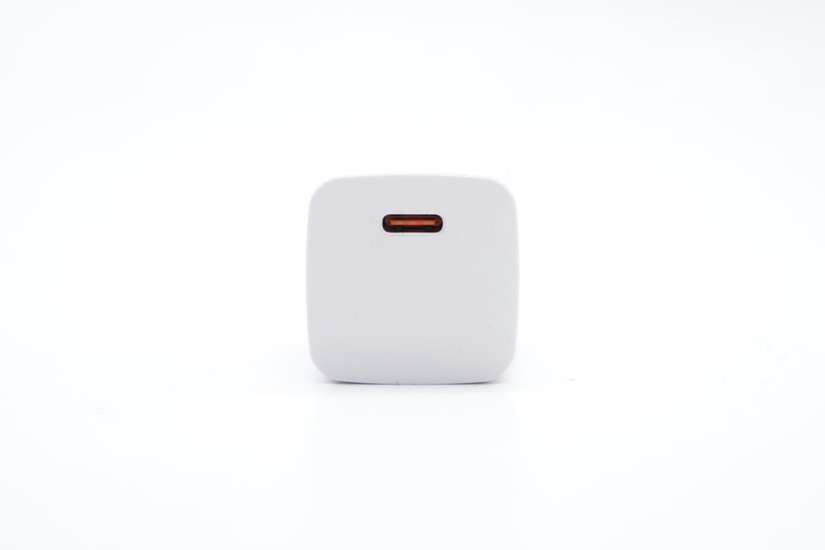 華科生33W迷你充采用PC材質白色外殼,表面啞光。充電器腰身以及頂面均空白,方便客戶進行差異化定制。