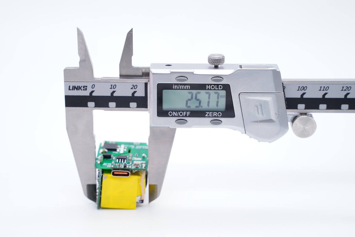 厚度為30.03mm。通過三維可以算得充電器體積約為31.38cm3,功率密度為1.05W/cm3。