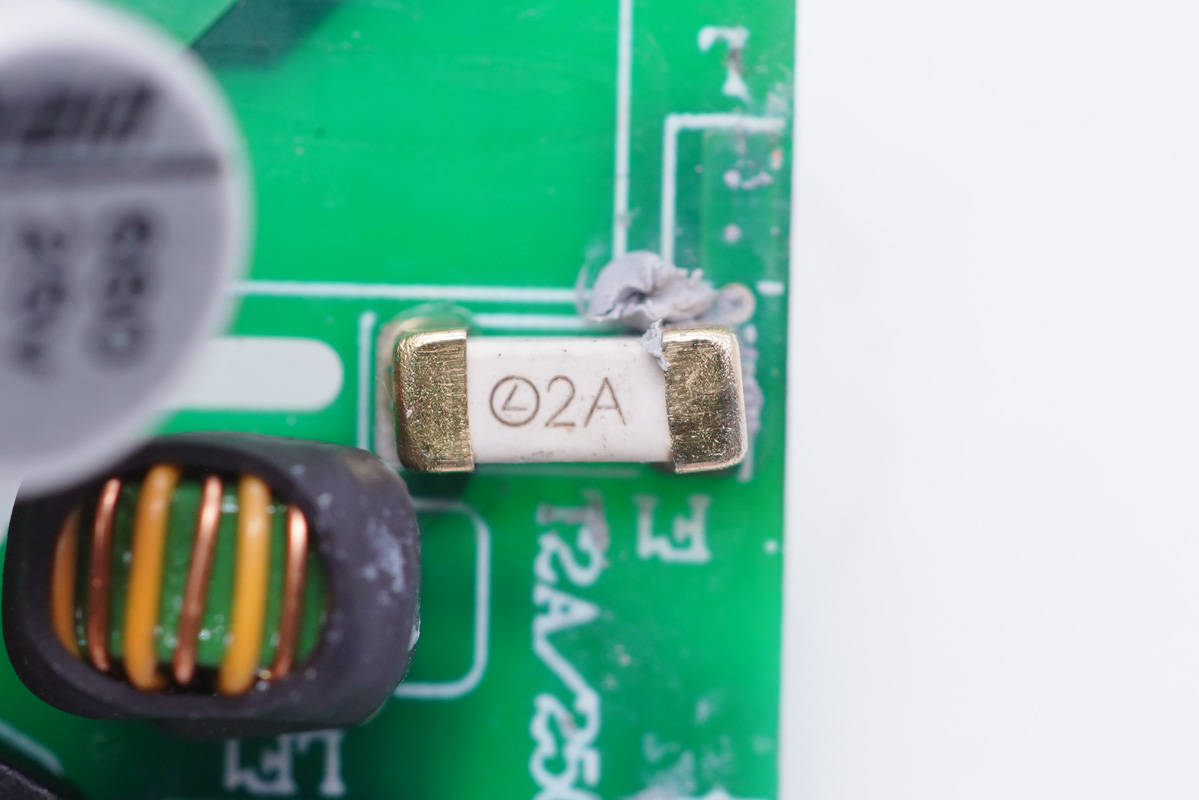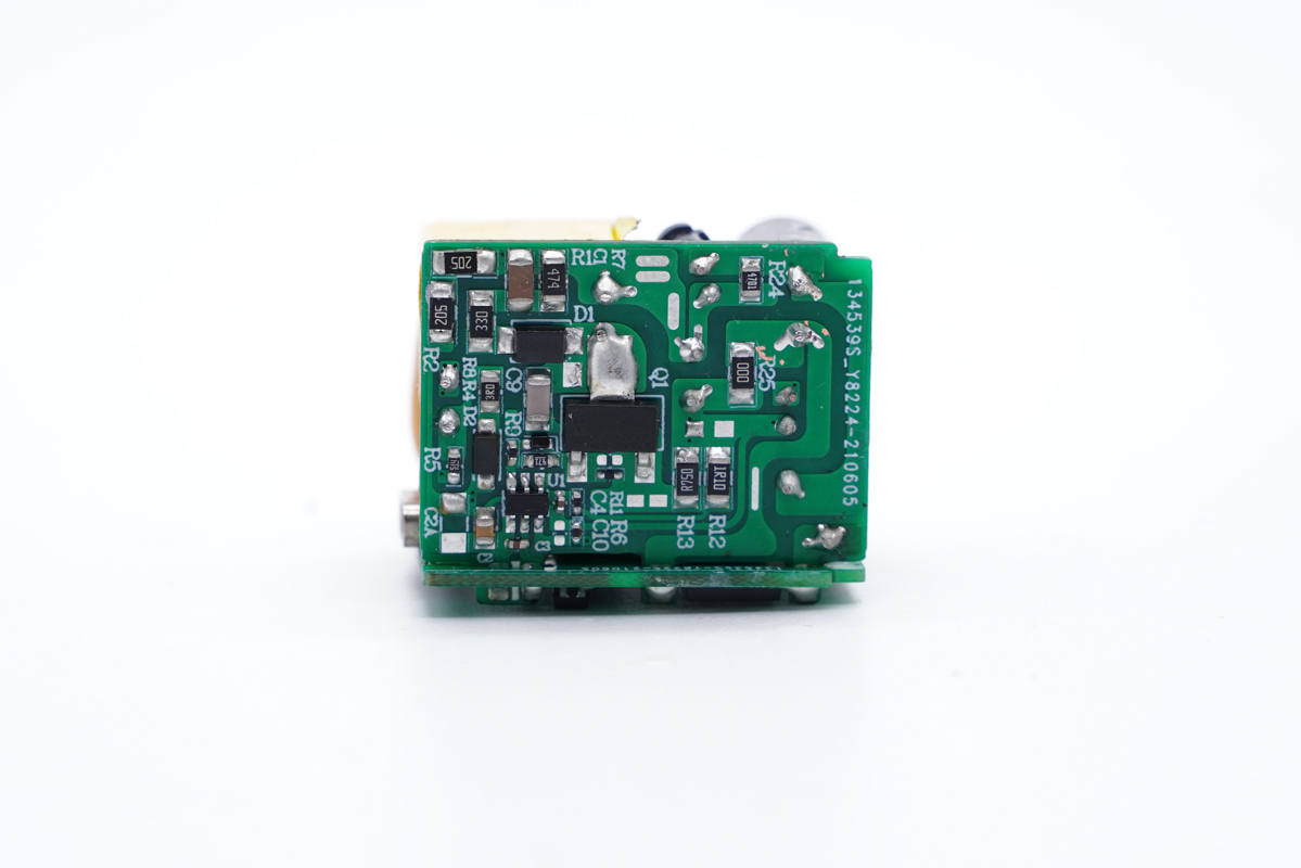 將兩塊小板分開,側邊小板上還有保險絲、共模電感、貼片Y電容、同步整流控制器和整流管。