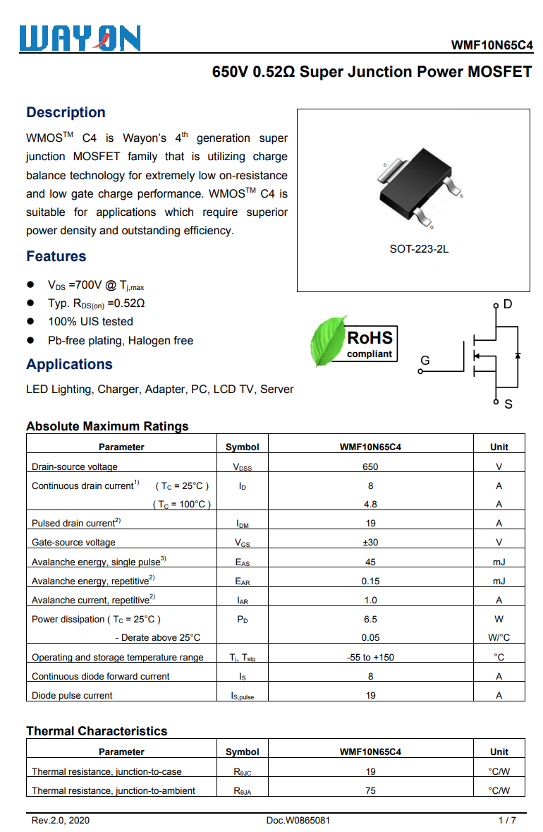 維安 WMF10N65C4 詳細資料。