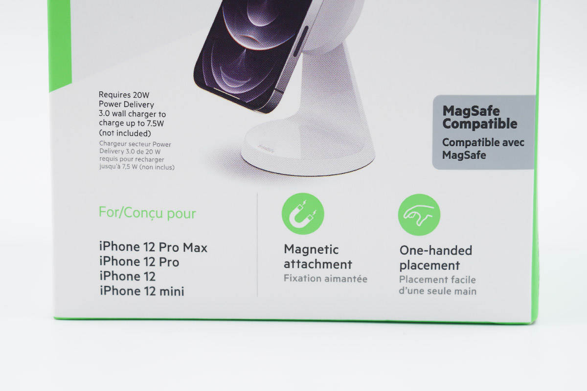 正面下方印有產品適配機型以及特性等,可為iPhone 12全系列手機進行無線充電。