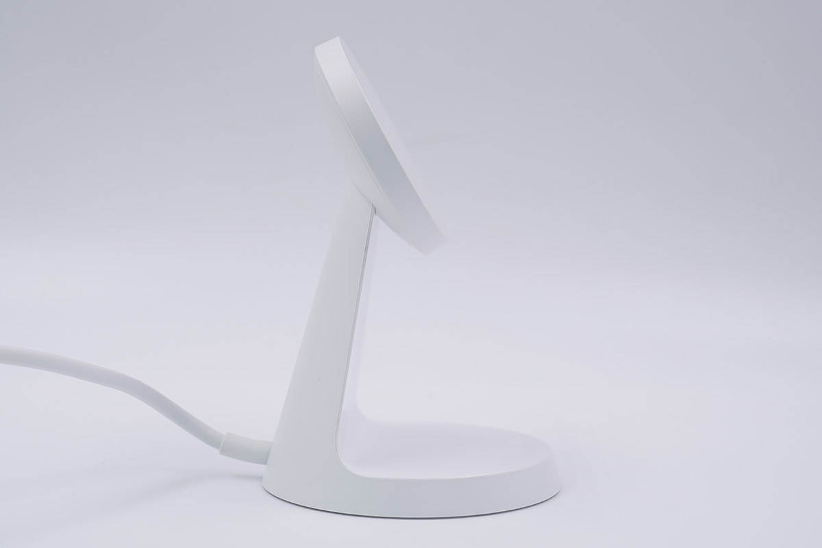 從側面看去,無線充電板具有一定的傾斜度,吸附手機后,可以邊充電邊刷劇,使用體驗會更好。