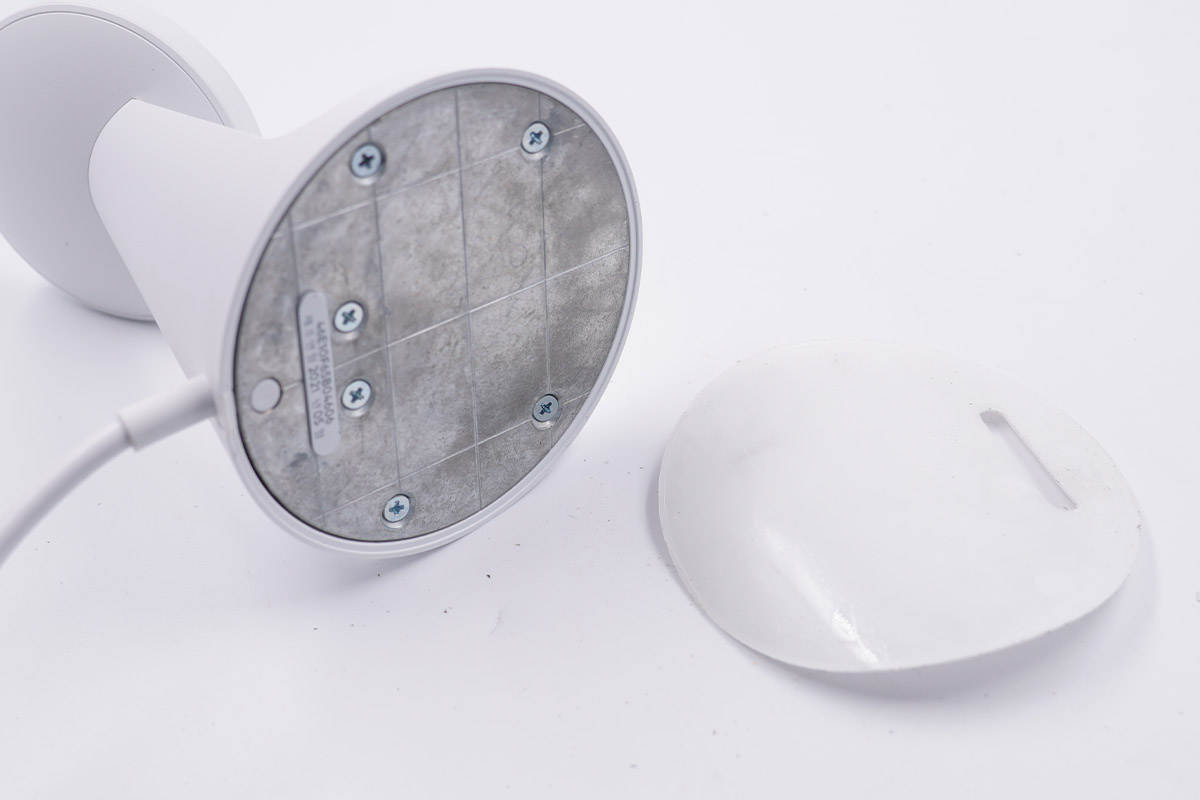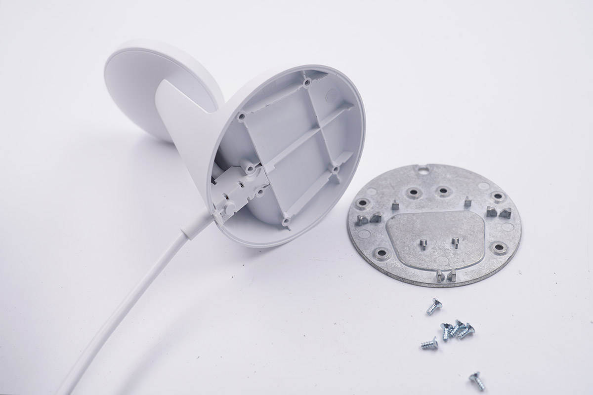 撕掉底部防滑膠墊,底部設有一塊配重鐵板,并有六顆螺絲封裝固定。