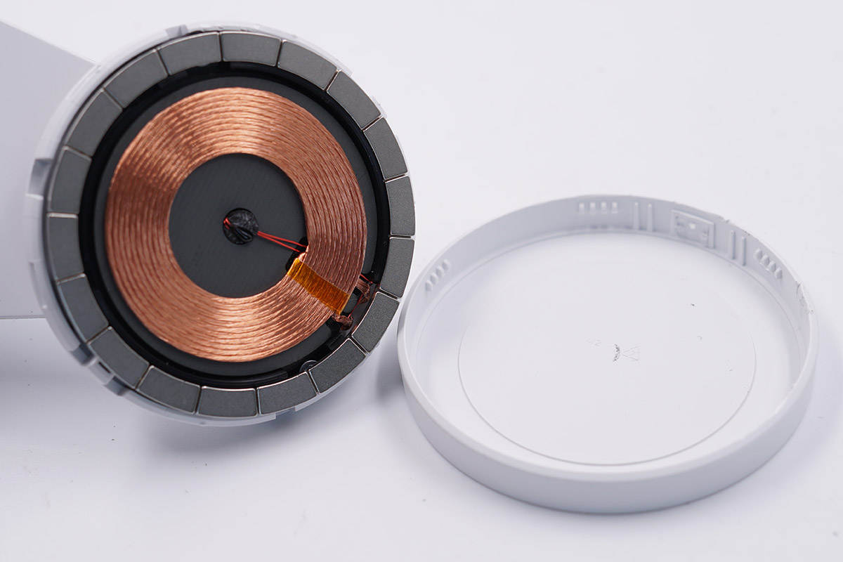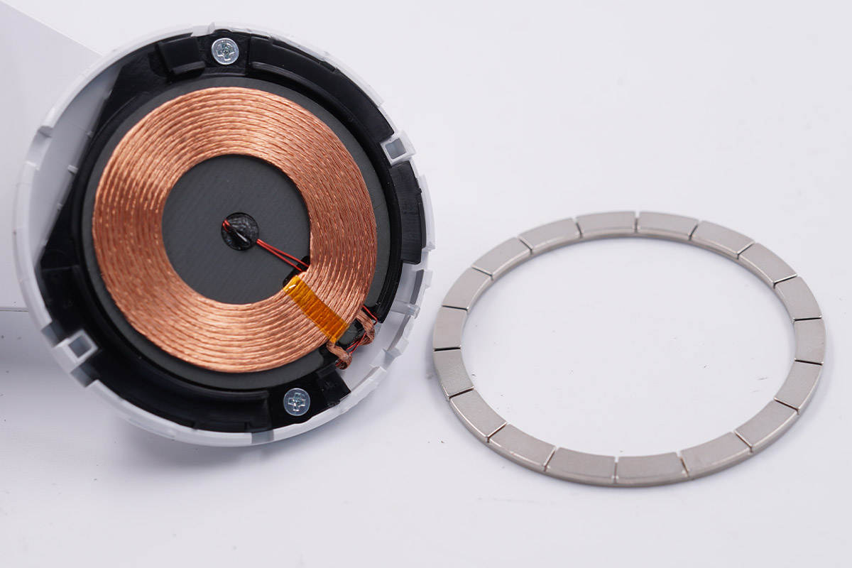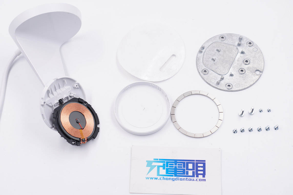 將充電板外殼拆開,內部邊緣設有磁鐵環,由18顆小磁鐵組成。