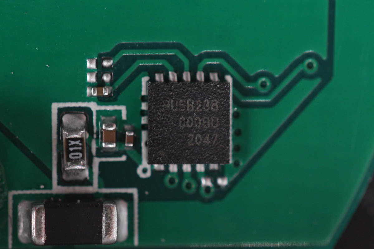 USB-C口控制器采用慧能泰HUSB238,用于接口輸入電壓控制。這是一顆極簡的USB PD?Sink(PD受電端芯片,也叫PD誘騙芯片)芯片,已經通過USB-IF PD3.0認證,TID 號3666。HUSB238耐壓可達30V,功耗非常低 ,使用極簡,傳輸額定功率最高可達100W;兼容PD3.0 V1.3和Type-C V1.4,還可以支持BC1.2 DCP、CDP和SDP和Apple 5V2.4A充電協議。