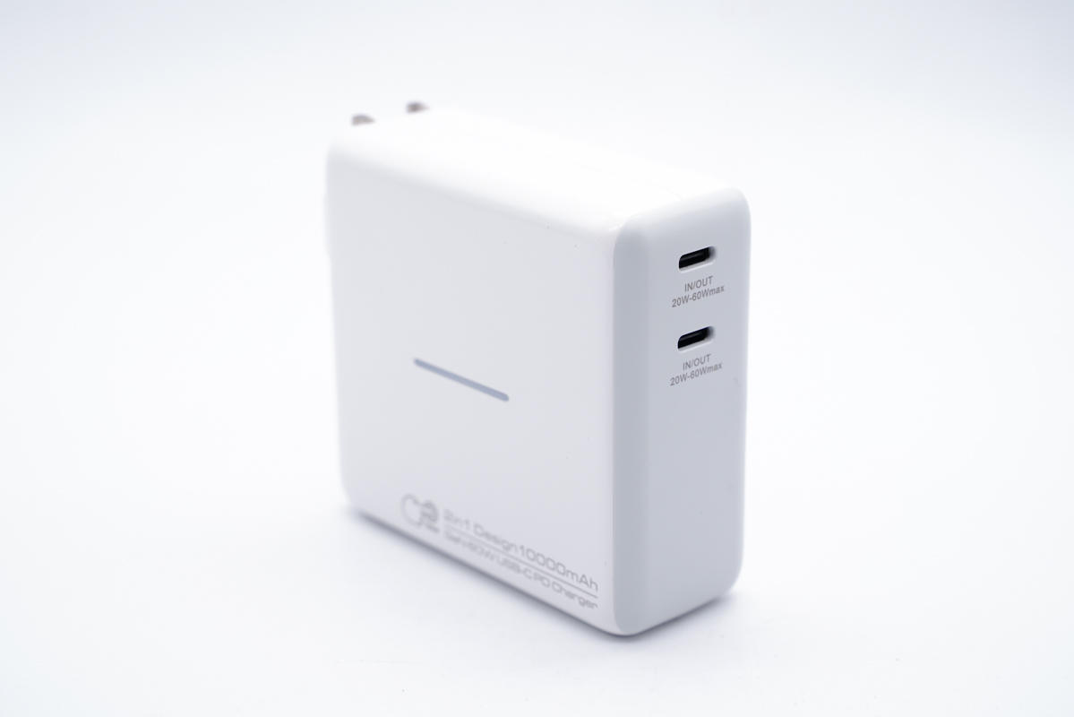最近充電頭網拿到了愛蘭博一款移動電源和氮化鎵快充二合一產品,將60W氮化鎵充電器和10000mAh移動電源結合在一起設計,配備雙USB-C接口,無論是充電器模式還是移動電源模式,兩個C口性能都一樣,日常使用十分方便。