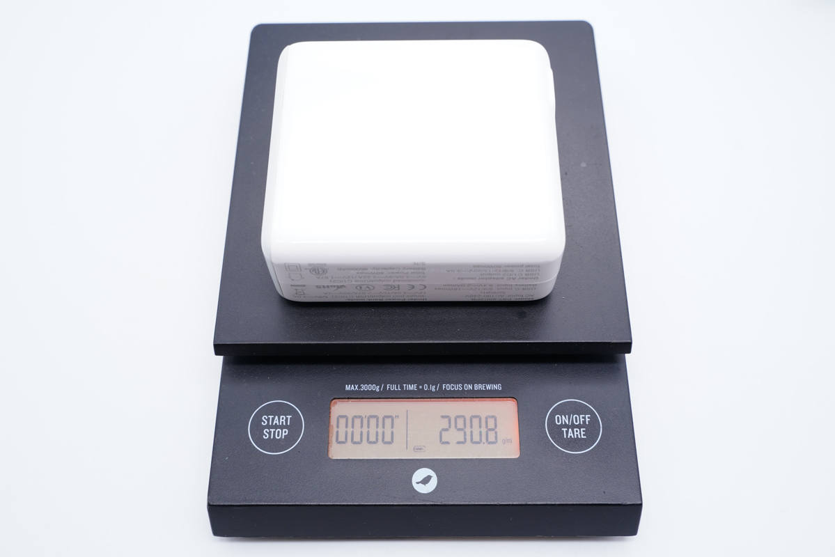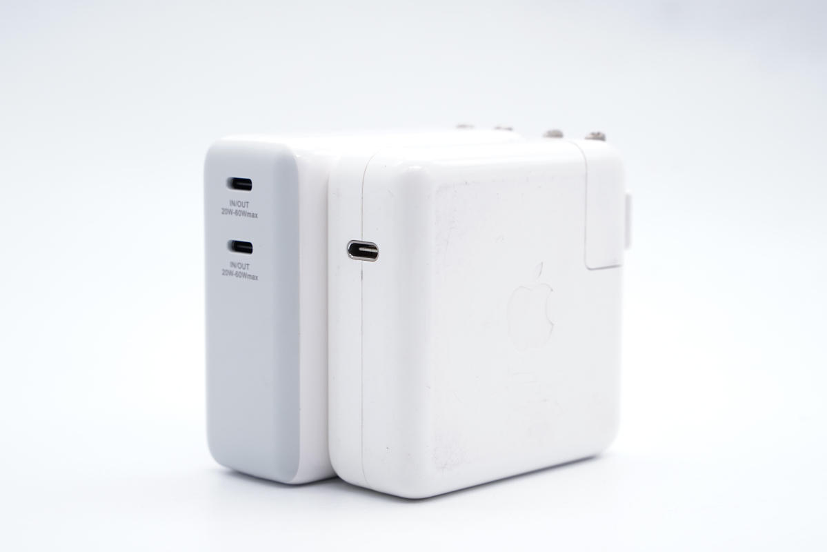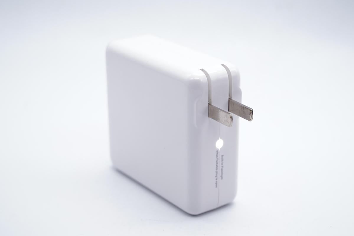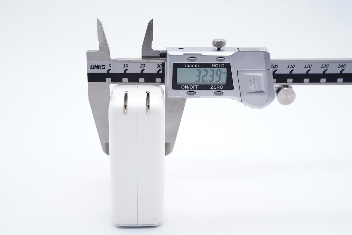 和蘋果61W充電器直觀對比,稍微長一點。