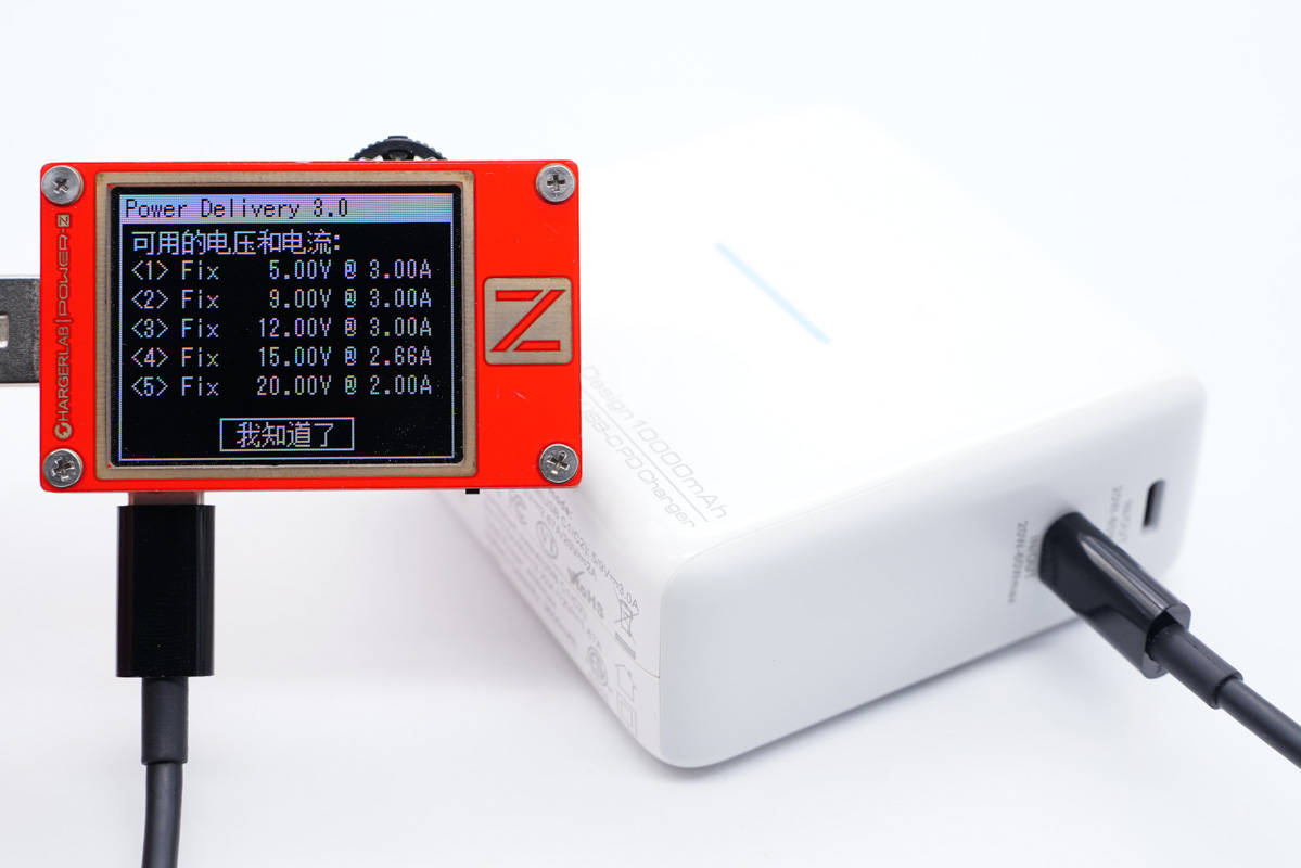 PDO報文也相同,即無論是充電器模式還是移動電源模式,兩個C口單口輸出性能完全一樣,支持功率盲插,使用十分方便。