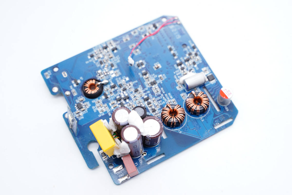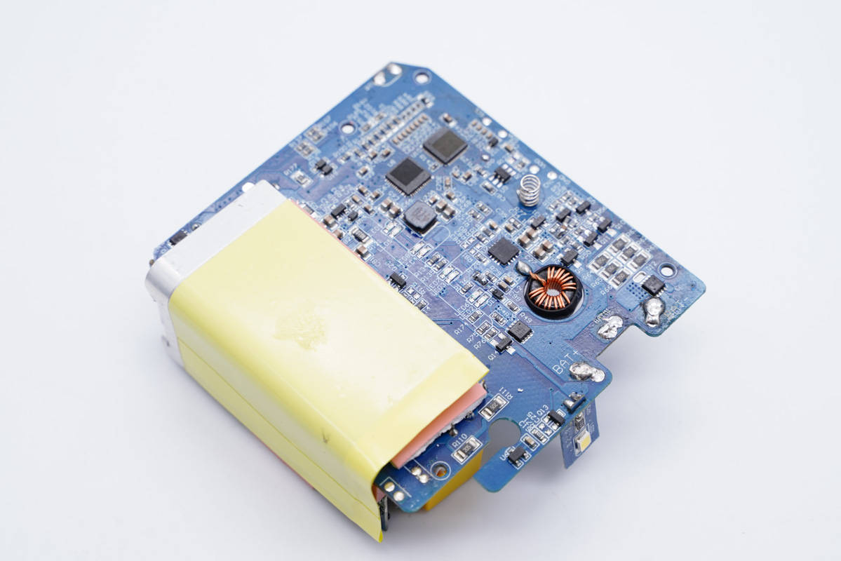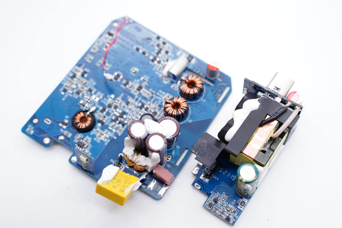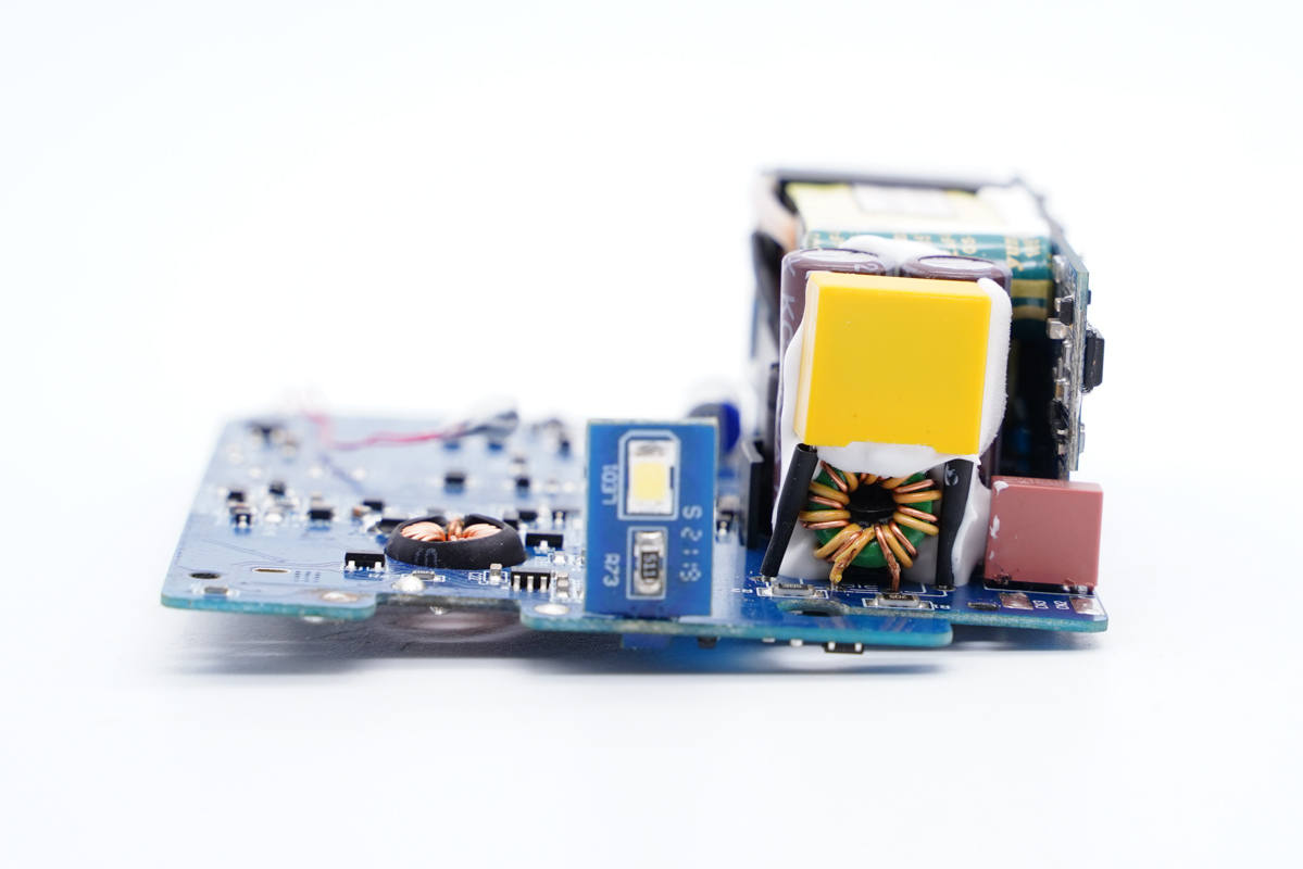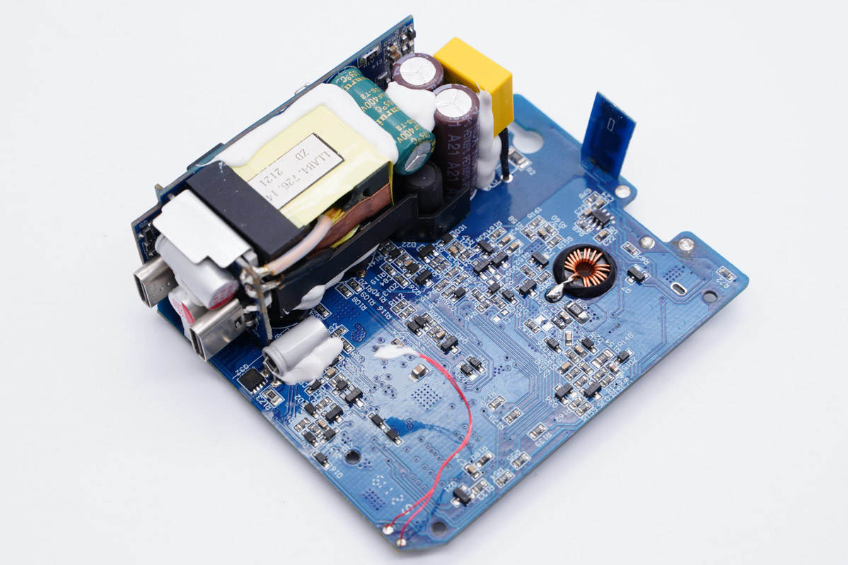 側邊小板背面設有主控芯片、氮化鎵功率芯片以及貼片Y電容等。