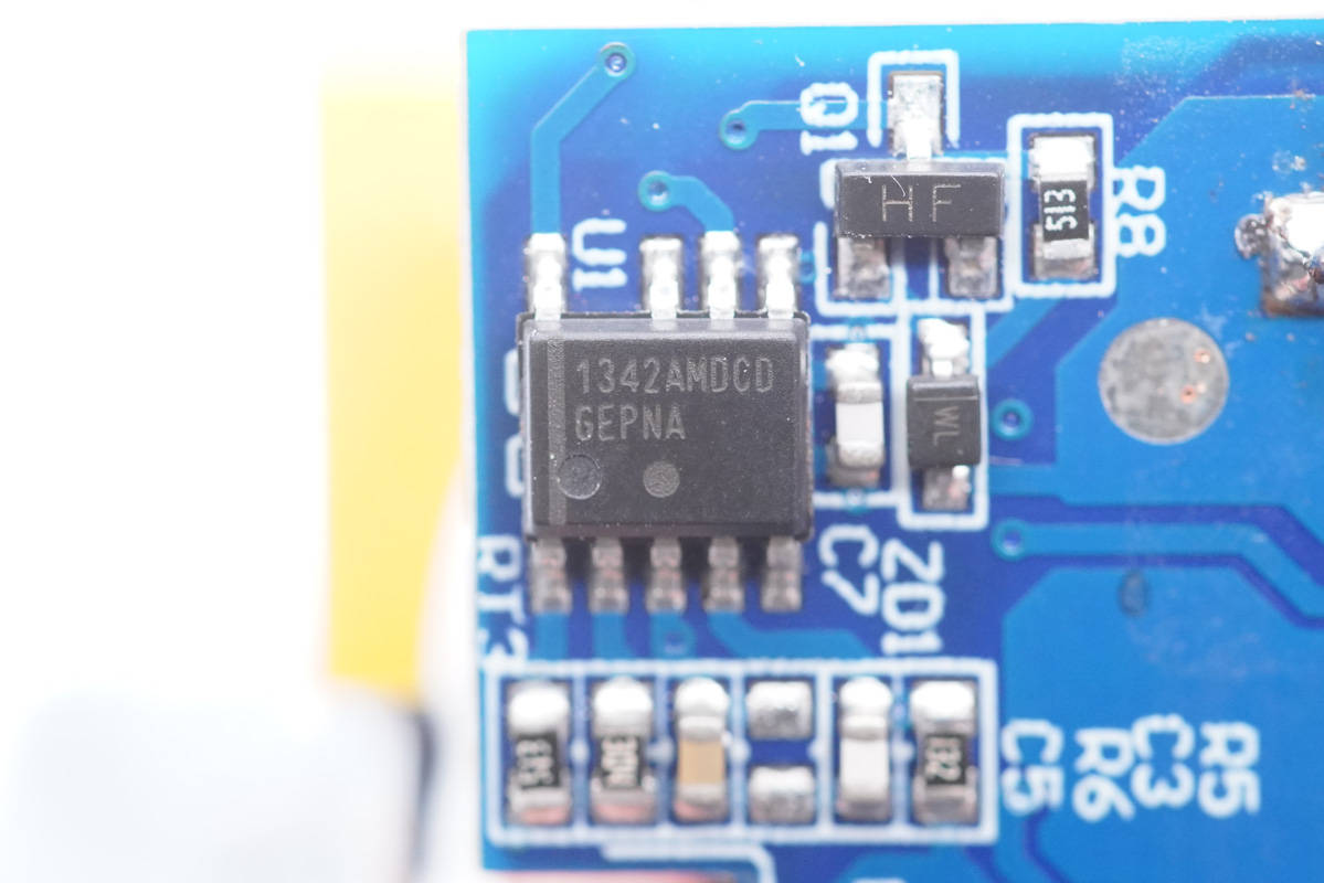 開關電源主控芯片采用ON安森美NCP1342,這是一顆高頻準諧振反激初級PWM控制器,內置主動X2電容放電和多重完善的保護功能,具有超低的待機功耗。