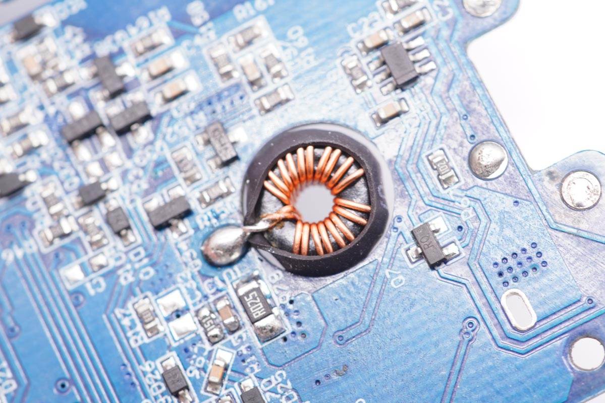 再回到主板,正面還有濾波電感、電容以及熱敏電阻。