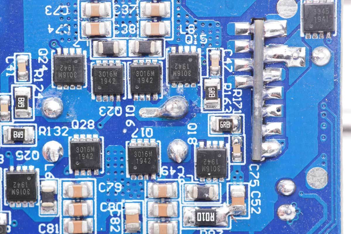 兩組8顆3016M MOS管,用于配合主控芯片進行升降壓電壓轉換。