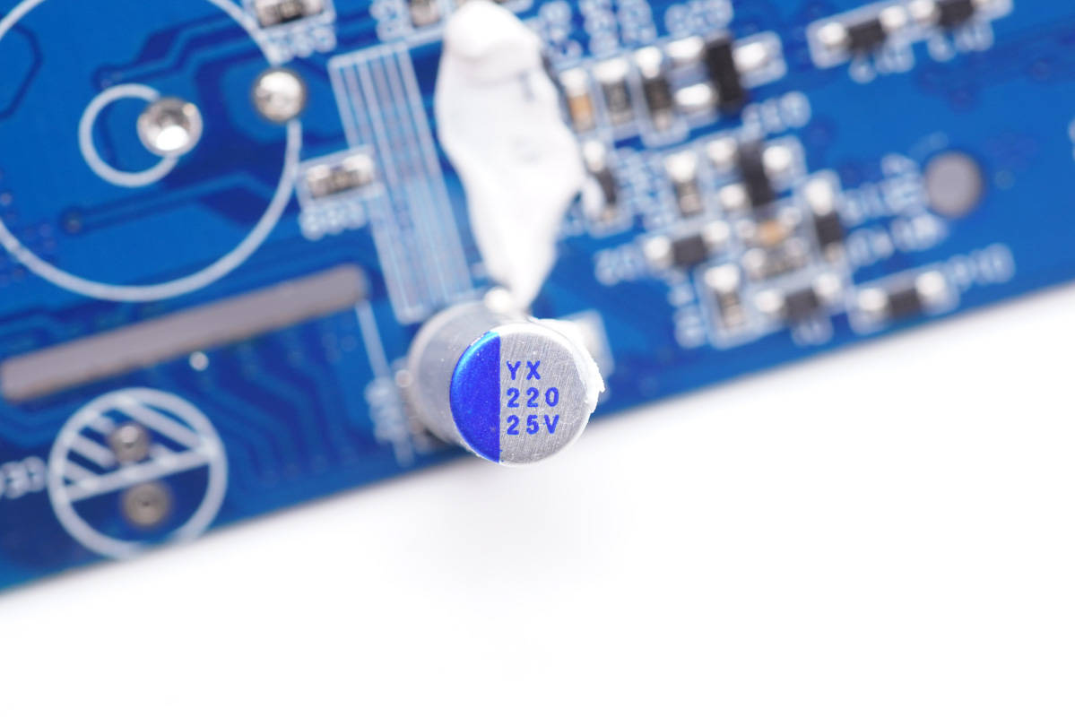 輸出濾波固態電容來自云星電子,規格為25V 220μF。