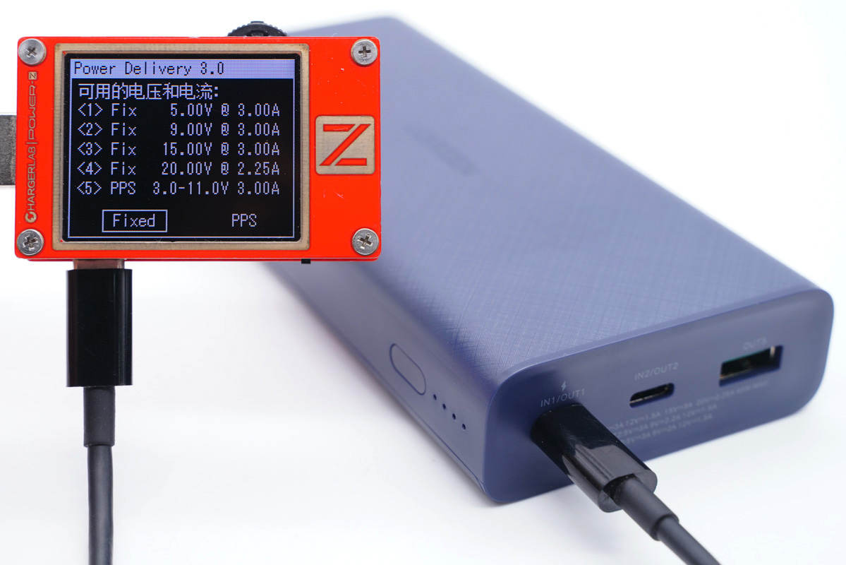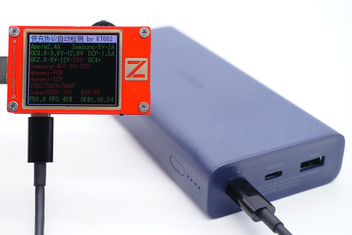 使用ChargerLAB的POWER-Z KT002讀取USB-C1的快充協議,支持PD、PPS、Apple2.4A、QC2.0、QC3.0、QC4+快充協議。