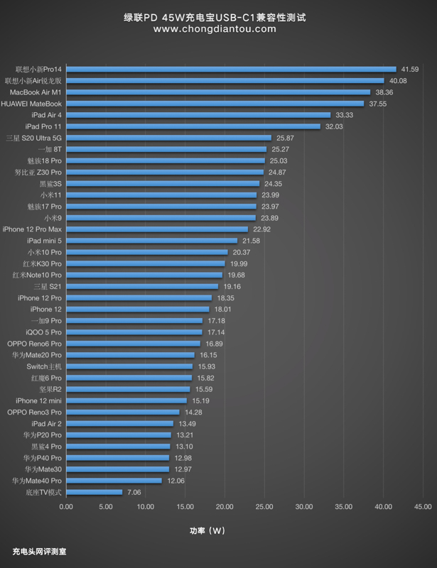 柱狀圖這里筆記本電腦的功率自然最高,其他設備均處于正常的快充狀態。