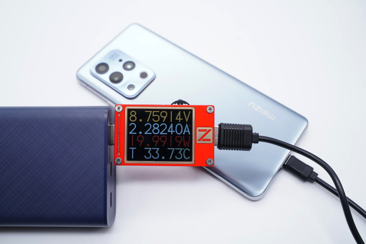 USB-A支持18W快充,為魅族18 Pro充電功率為8.75V 2.28A 19.99W。