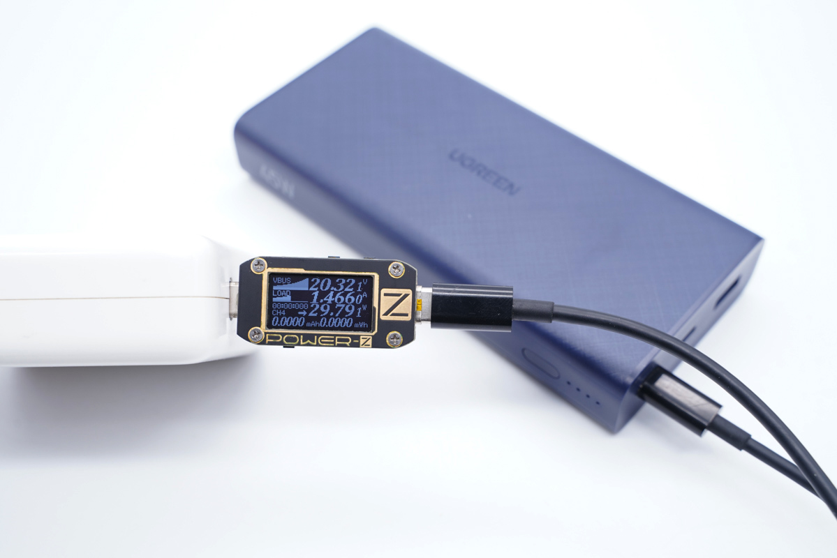 充電寶配備2個USB-C接口并且均支持雙向快充,通過USB-C1可以為充電寶提供30W的自充功率,當然要選擇30W及以上的PD充電器。