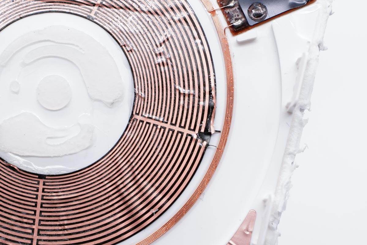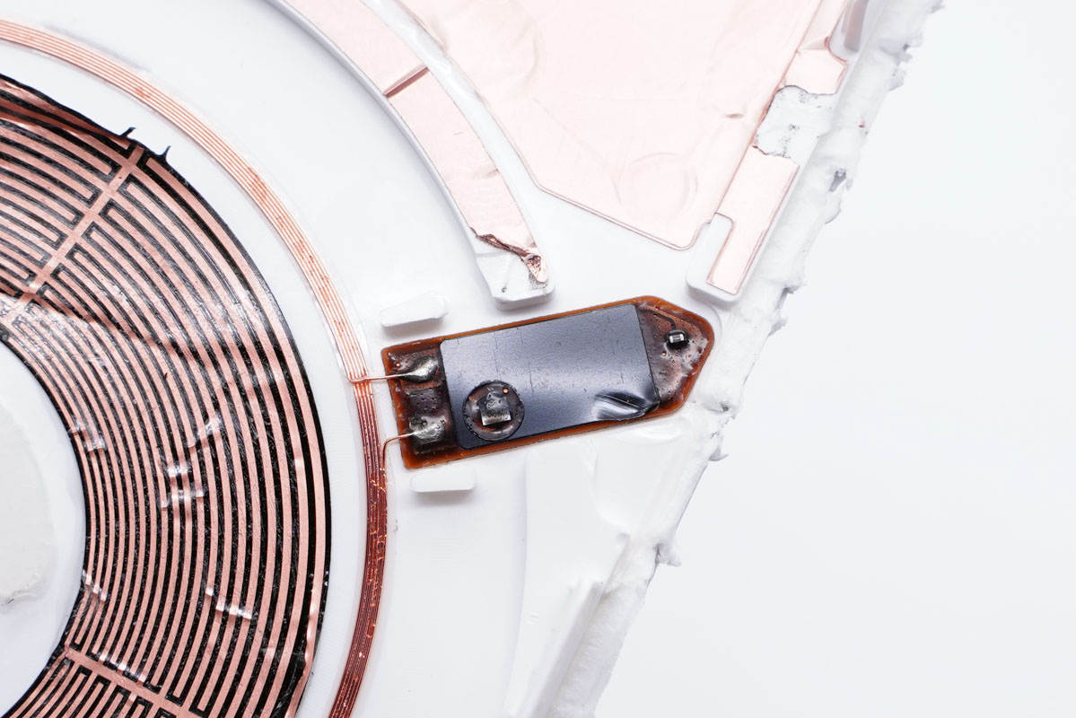 沿接縫處打開蓋子,蓋子下面是無線充電線圈和吸附手機的磁鐵。