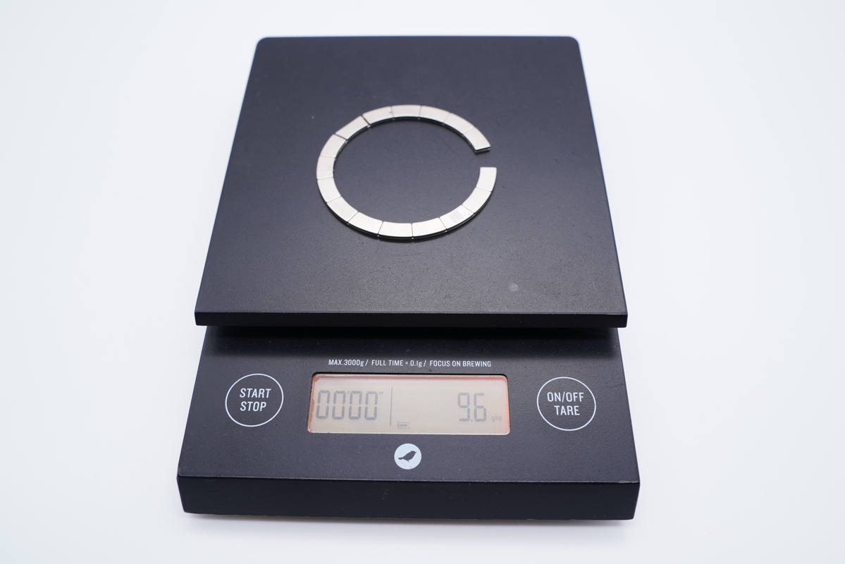 16顆小磁鐵通過金屬片固定成環狀。
