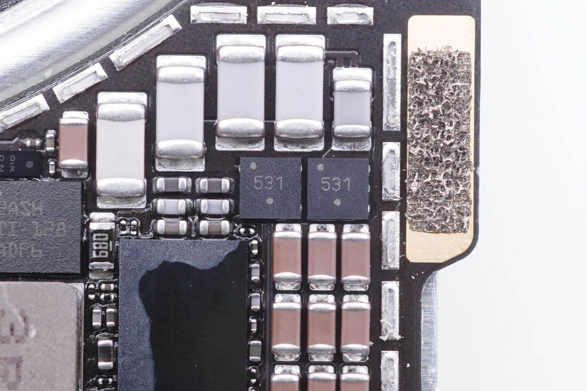 兩顆絲印531的MOS管,配合無線充電主控芯片內置的兩個開關管組成全橋。