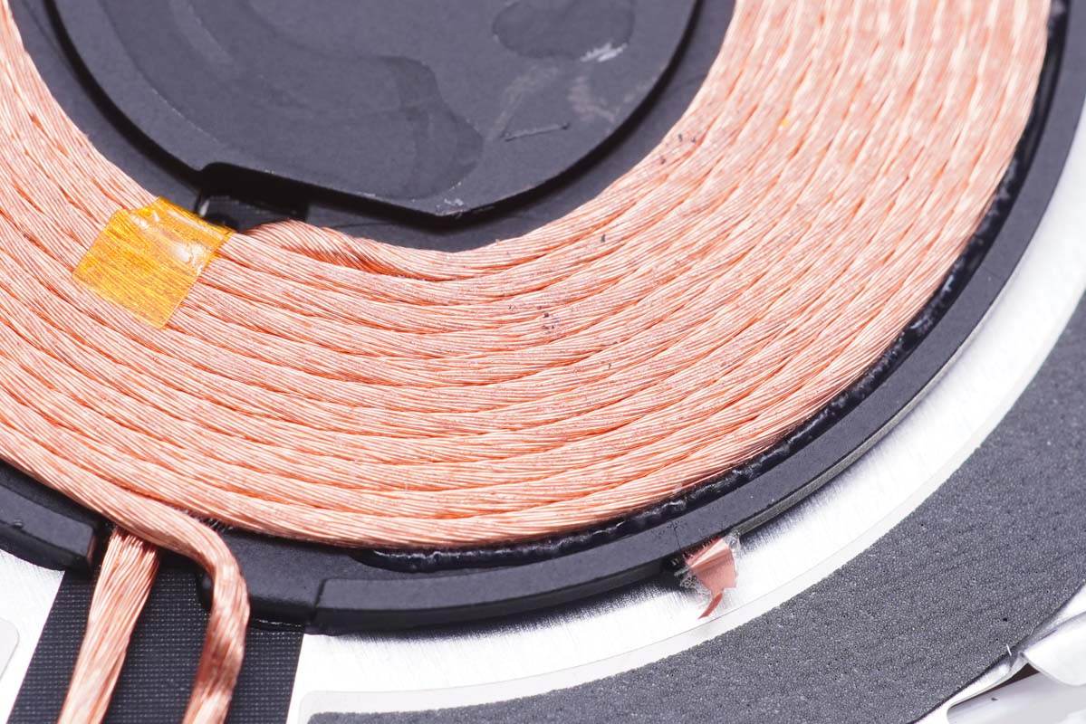 無線充電線圈固定在隔磁片上,采用利茲線繞制,降低損耗。
