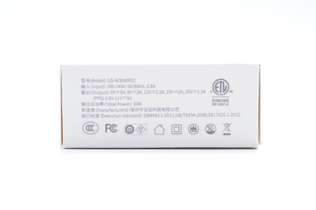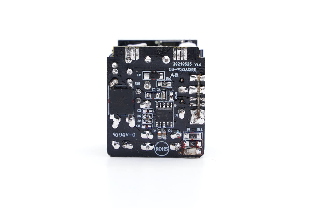 而30W迷你充則是為其他品牌手機設計,滿足用戶對更大功率迷你充的需求。這款充電器有固定和折疊插腳兩種款式,滿足居家辦公和外出攜帶等不同場景的使用需求,并通過了CCC、FCC、PSE、ETL認證,全球主要國家或地區都能使用。下面充電頭網就對這款充電器進行詳細拆解,看看做得如何。