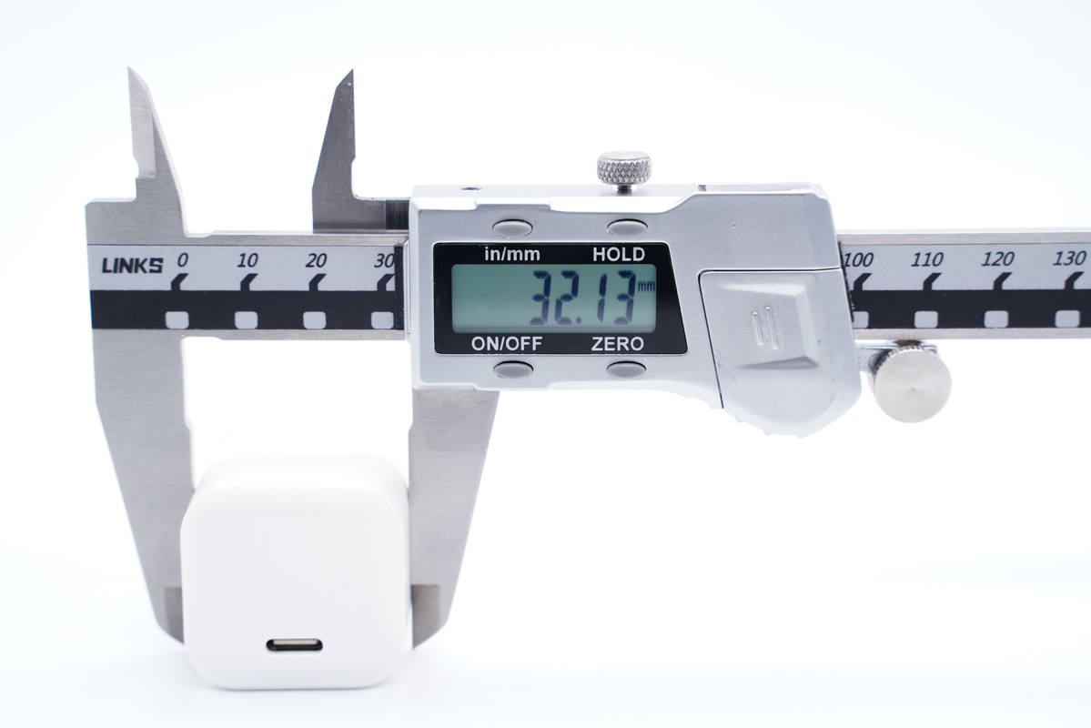 和蘋果30W充電器直觀對比,體積優勢非常明顯。